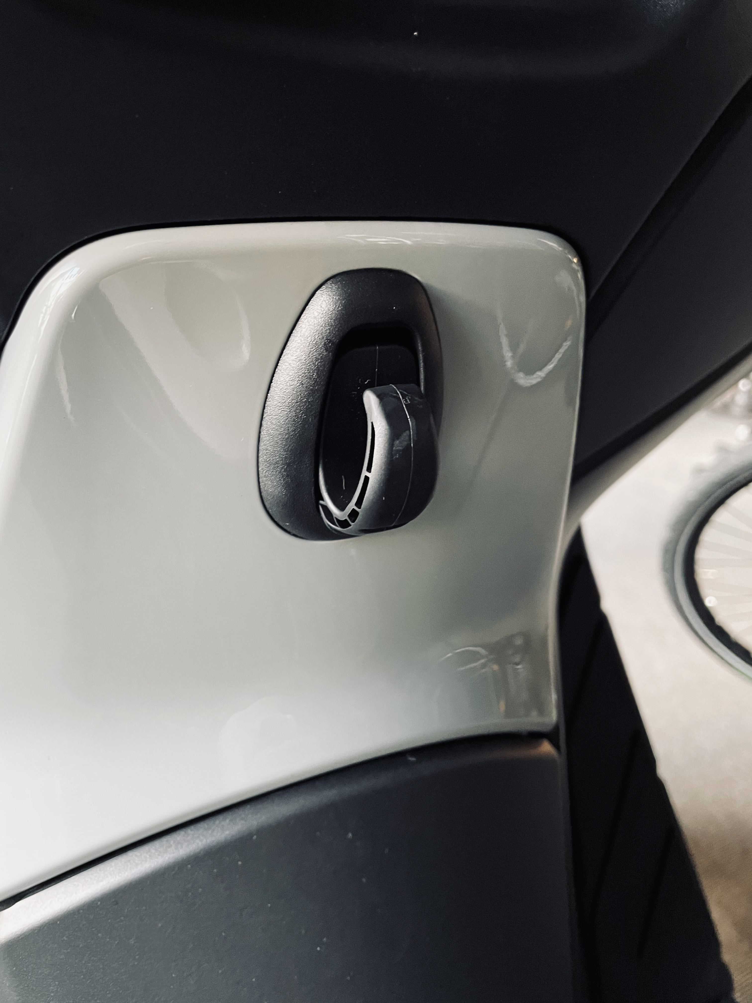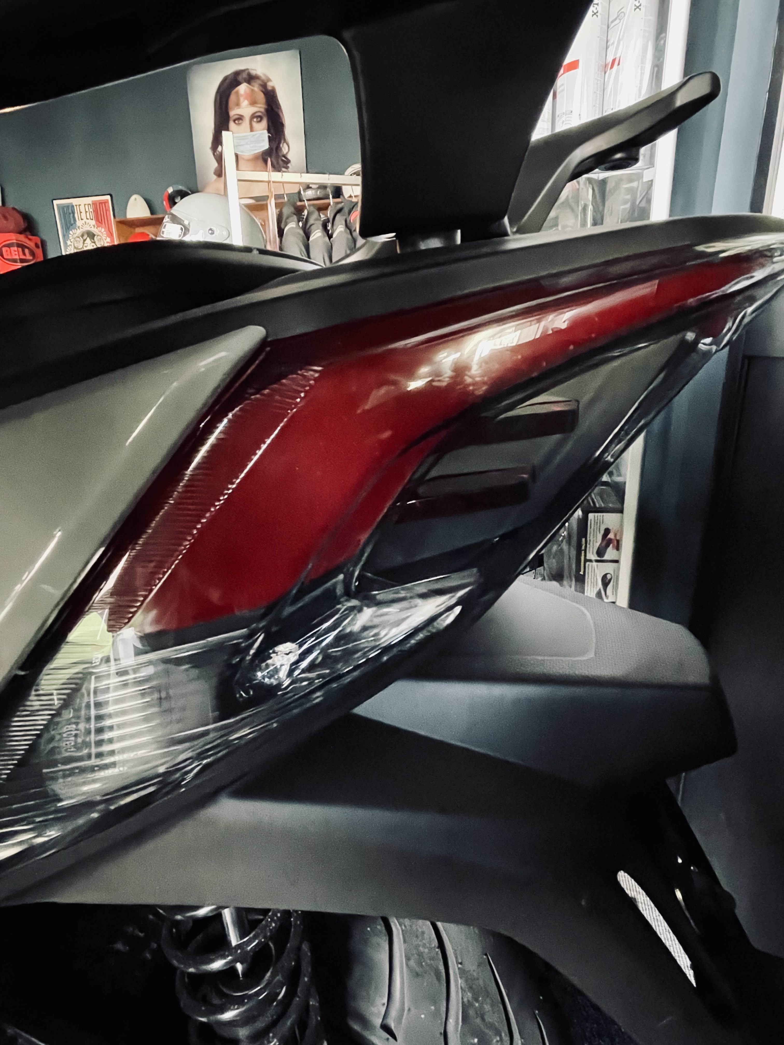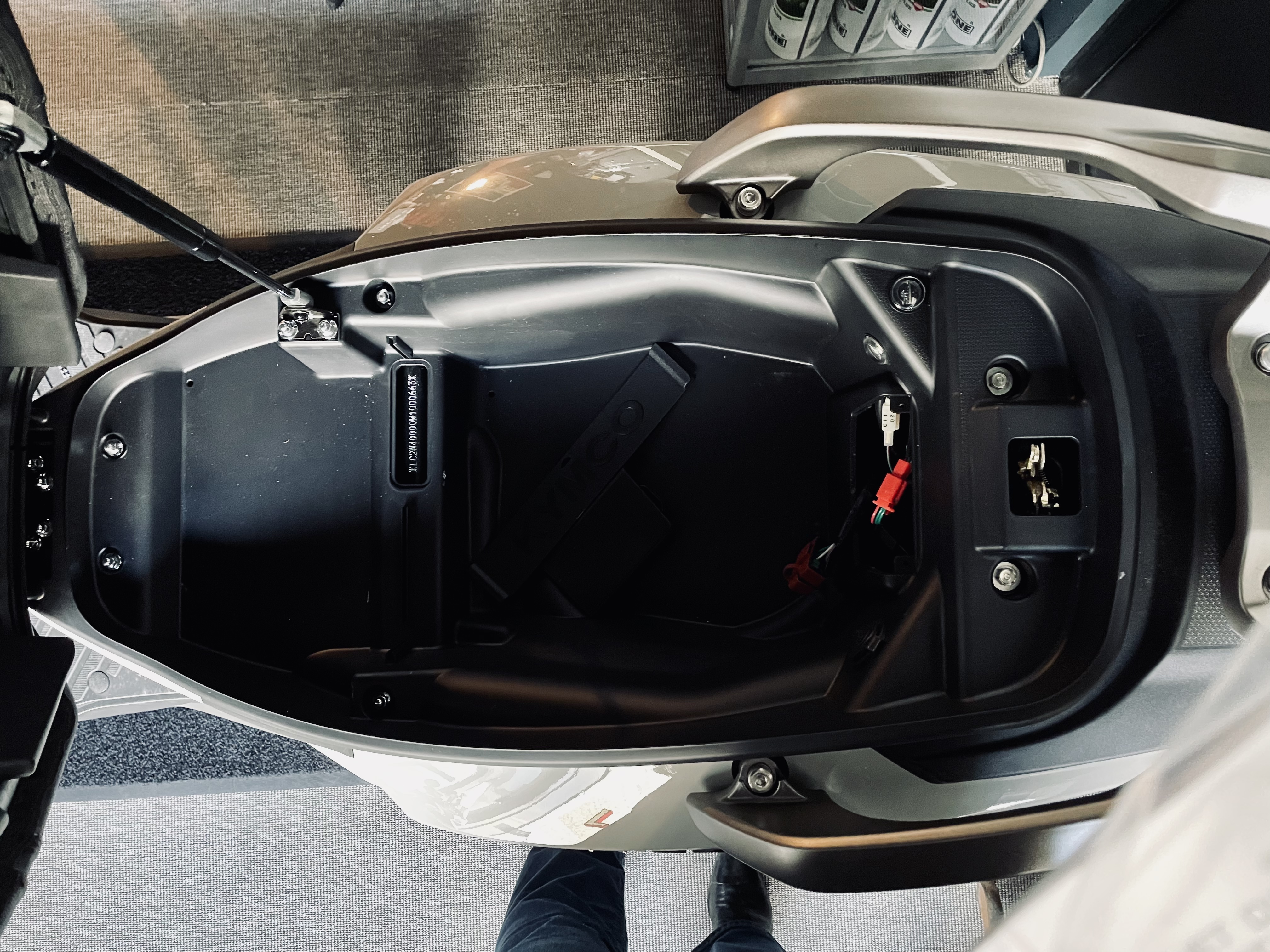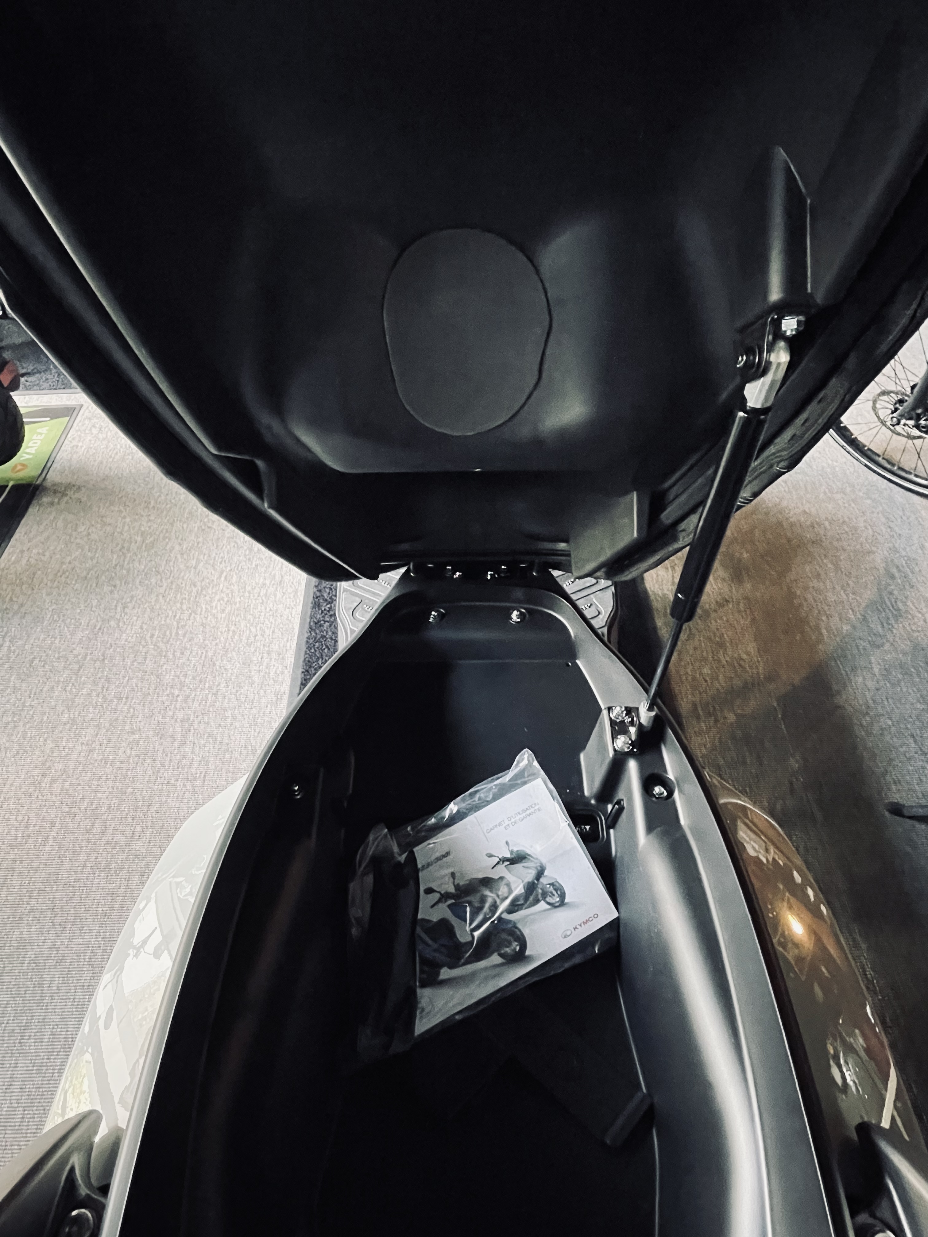 Il est doté d’un pare-brise couvrant, d’un large tablier, d’un grand coffre à vérin qui permet de ranger un casque intégral ainsi qu’un jet et enfin, sa boîte à gants dispose d’une prise usb permettra quant à elle de recharger votre portable en route.